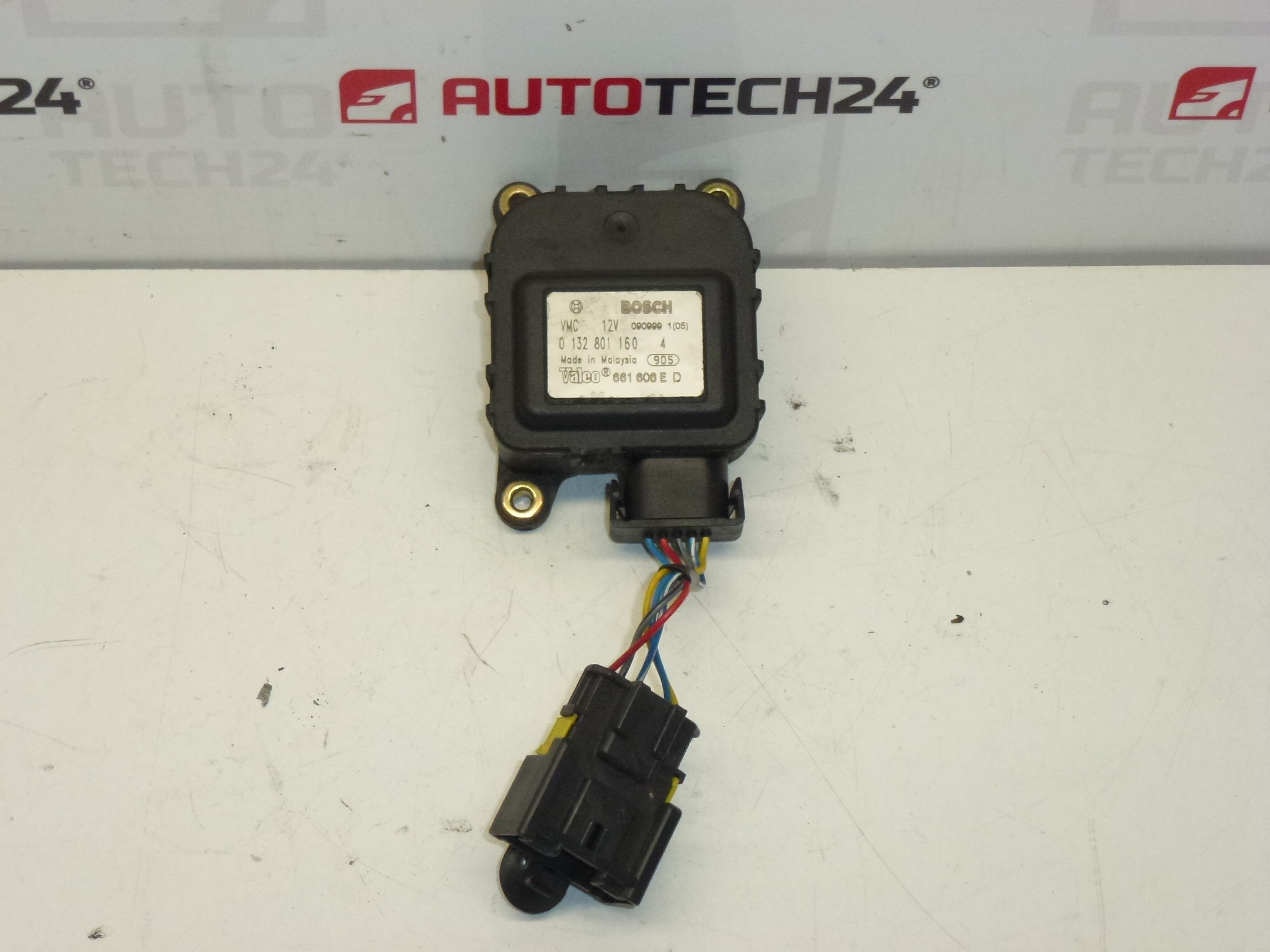 Servomoteur Bosch pour système de chauffage des véhicules Citroën et Peugeot, référence 0132801160 / 6447ER. Ce servomoteur commande les volets du circuit HVAC pour réguler le flux d’air et la répartition de la température dans l’habitacle.